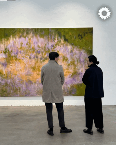 Schon beim Betreten des Raumes war spürbar, dass diese Werke etwas Besonderes sind. Matsubaras Bilder wirken wie feine, fließende Übergänge zwischen Traum und Realität. Sie erzählen keine klaren Geschichten – und genau das macht sie so faszinierend. Schicht um Schicht baut er mit Öl auf Leinwand Landschaften auf, die zugleich erdig und ätherisch wirken. Man hat das Gefühl, in eine andere Welt einzutreten – eine, in der Stille, Natur und Bewegung miteinander verschmelzen.